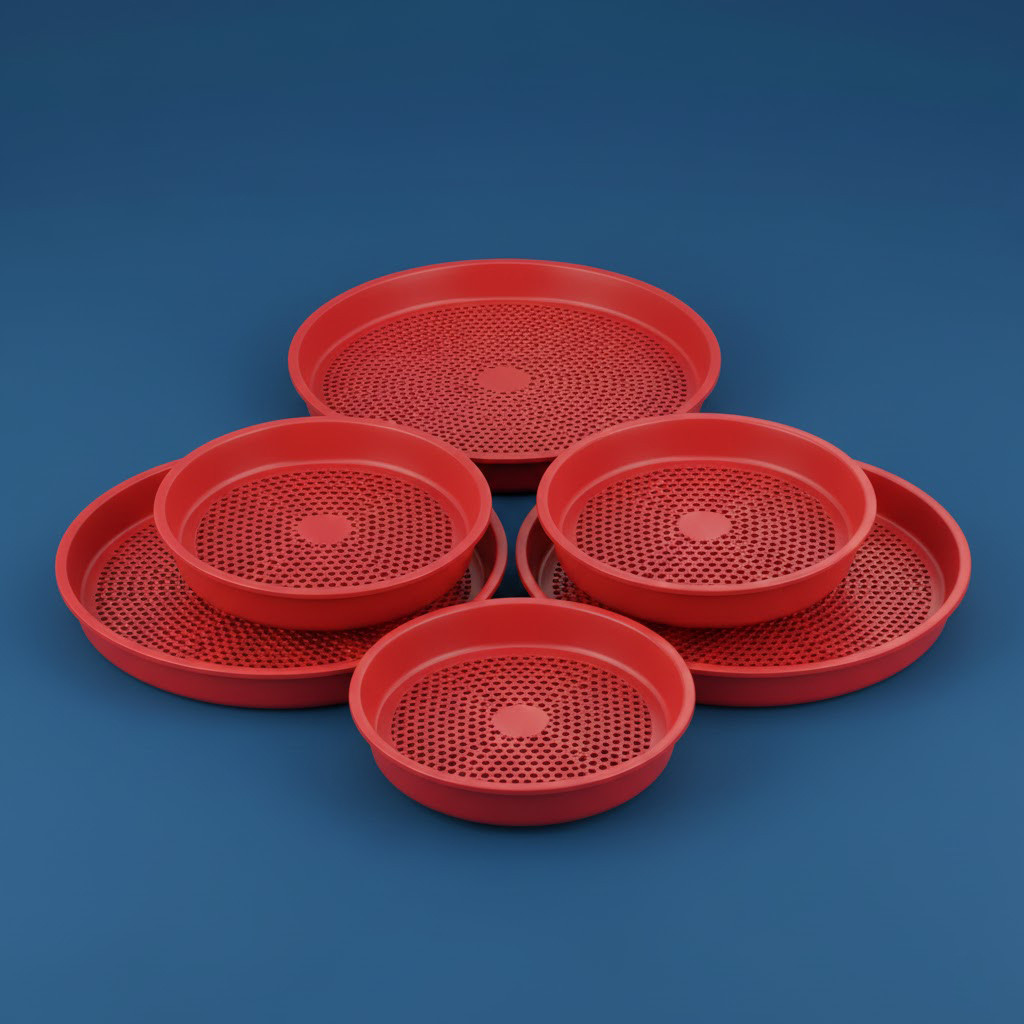 Plateau d’alimentation robuste fabriqué avec des matériaux purs et résistants, conçu pour une distribution uniforme de l’aliment pendant les premières phases d’élevage. Assure une croissance homogène et saine des poussins, avec un nettoyage facile.